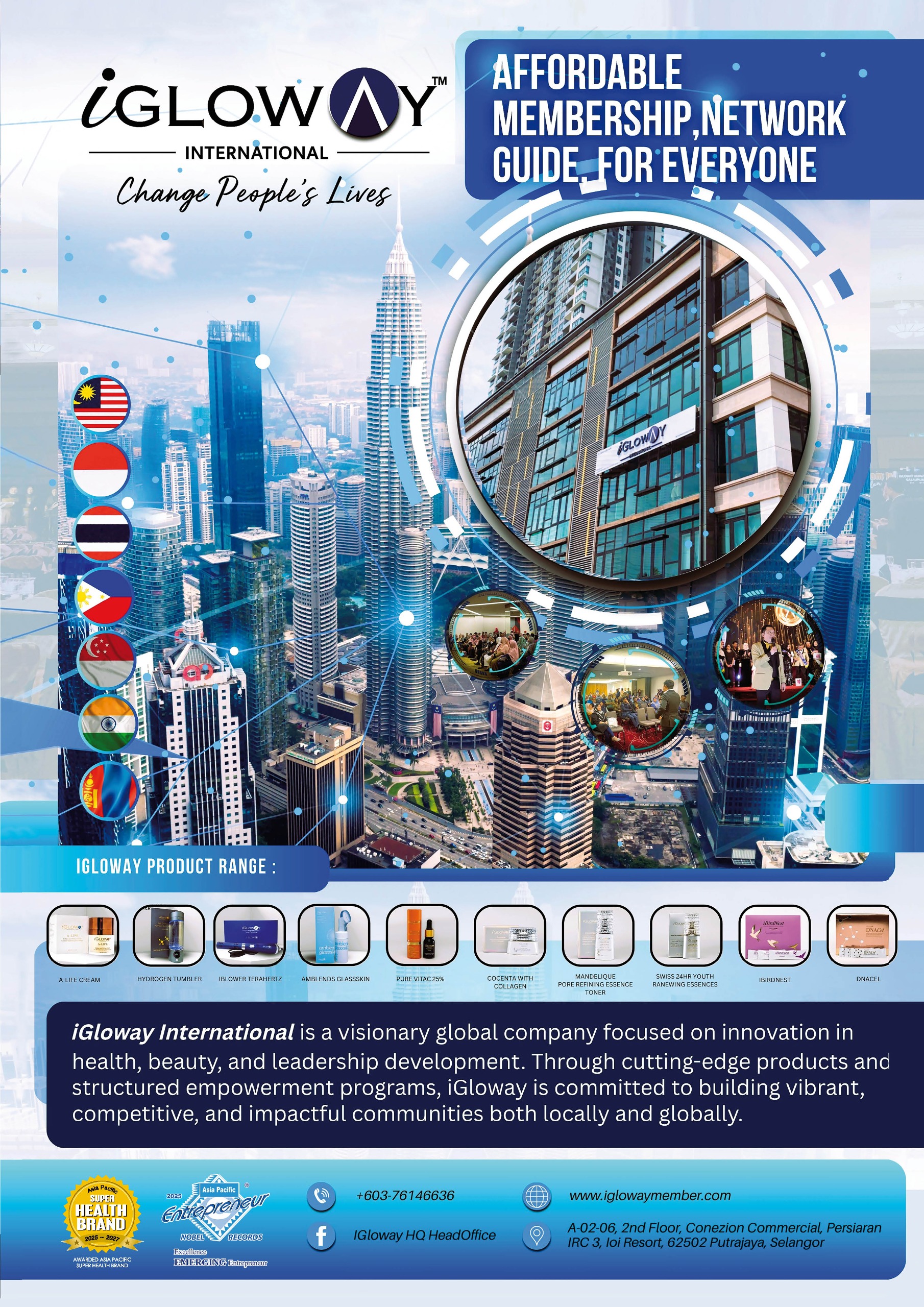 iGloway International Sdn Bhd was incorporated in April 2023 and was officially launched on 17th February 2024, located at IOI Resort Conezion Putrajaya, Malaysia, and has branches in the Philippines, Thailand, Indonesia and India with upcoming locations in Cambodia, Vietnam, Nigeria, Ghana and Mongolia.